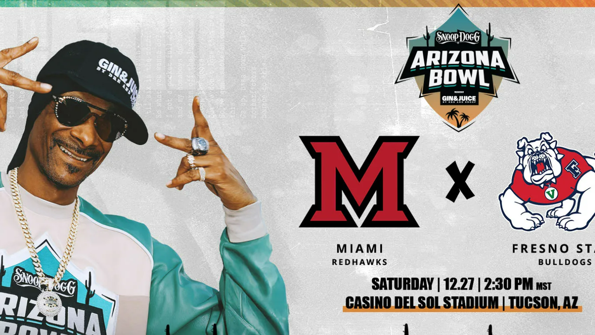 Snoop DoggArizona Bowlpresented by Gin & JuiceMiami Redhawks vs. Fresno St. BulldogsSaturday, December 27th2:30PMCasino Del Sol Stadium Tickets at TheArizonaBowl.com